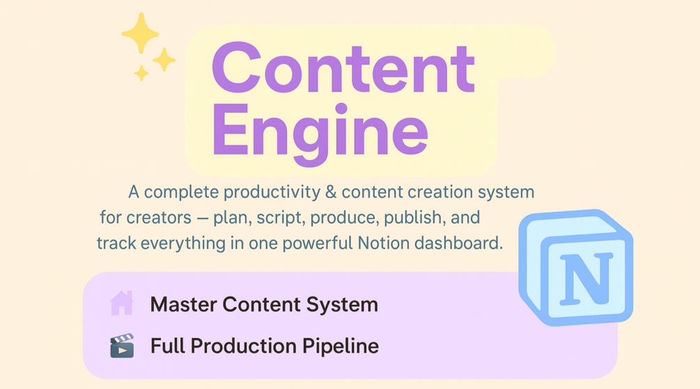 ✨ Content Engine — Notion Creator OS for Content Creators (Plan, Script, Produce & Track)